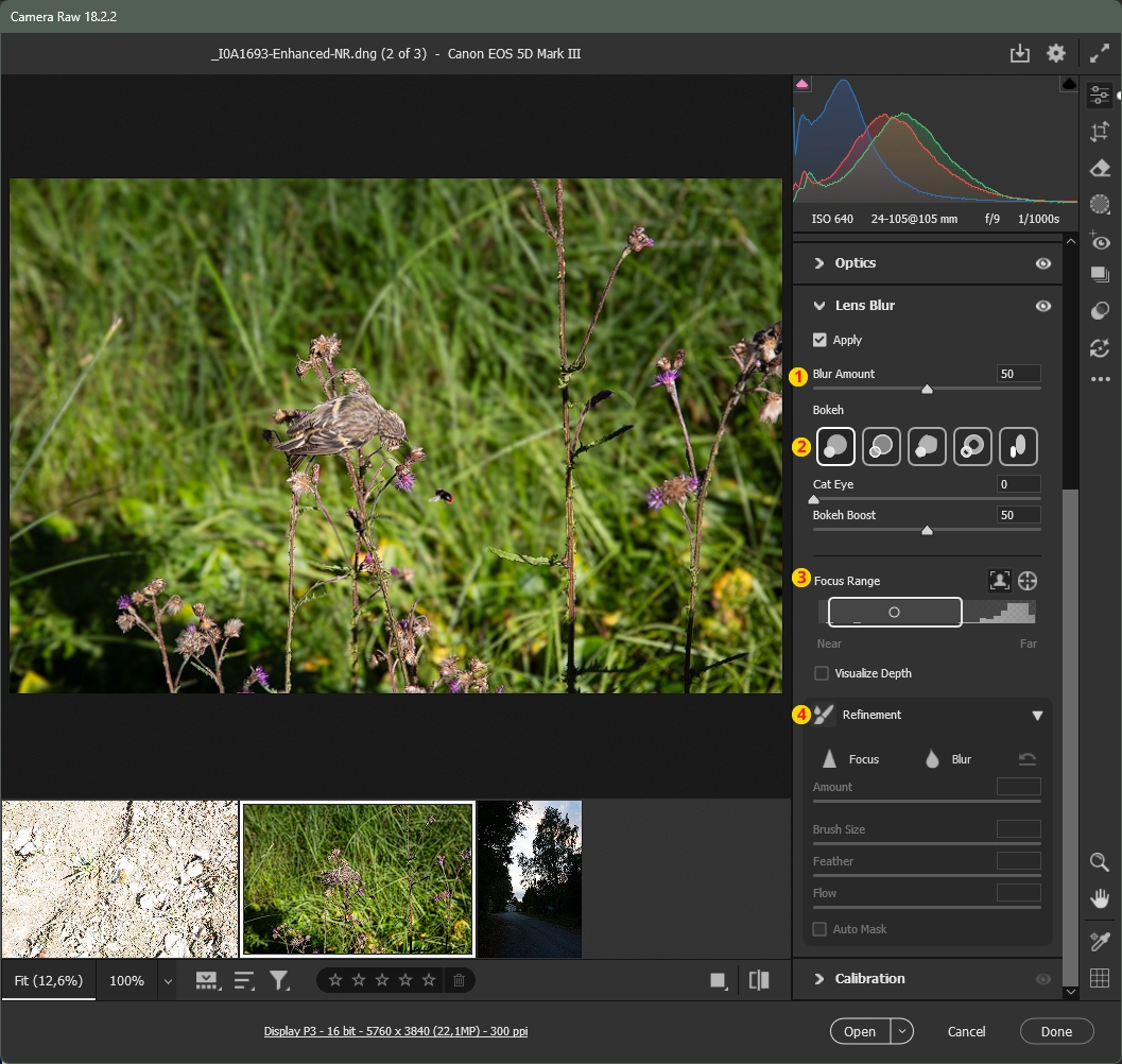 Tekoälypohjainen työkalu, jolla voit lisätä kuvaan optista epäterävyyttä (bokeh-efekti) jälkikäteen. Se ei vain sumenna kuvaa tasaisesti, vaan luo kuvaan syvyyskartan (Depth Map). Työkalun tarkoituksena on simuloida kalliin, valovoimaisen objektiivin luomaa kapeaa syvyysterävyyttä (kohde terävä, tausta sumennettu). Se sopii erityisen hyvin muotokuviin, joissa tausta halutaan erottaa kohteesta pehmeällä sumennuksella. Kun haluat ottaa toiminnon käyttöön kuvassa: