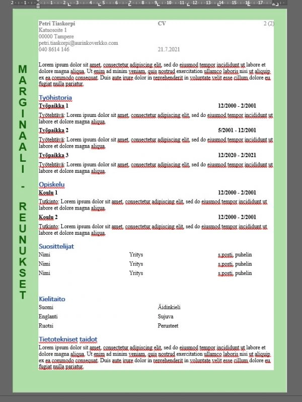Marginaalit (MS Word Reunukset)